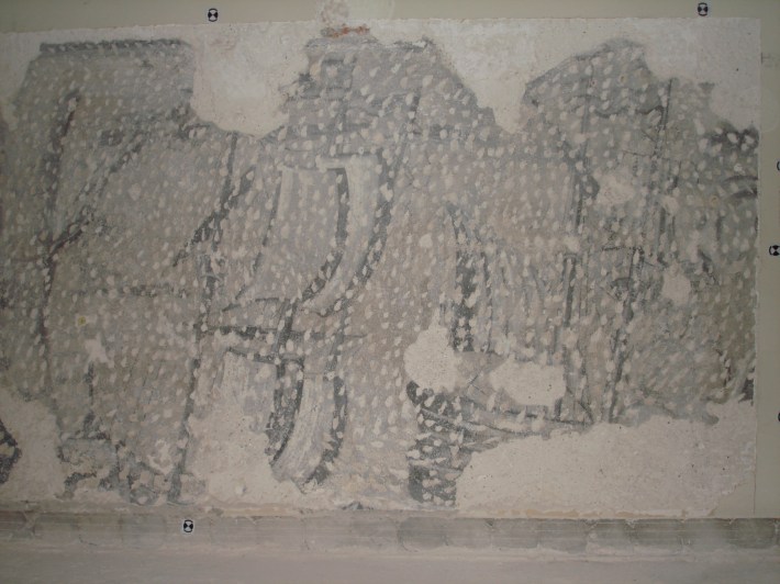 Excavation area for documentation of a 55sqm grisaille painting on the compartment wall, discovered in a town house in Basel city, Aeschenvorstadt.